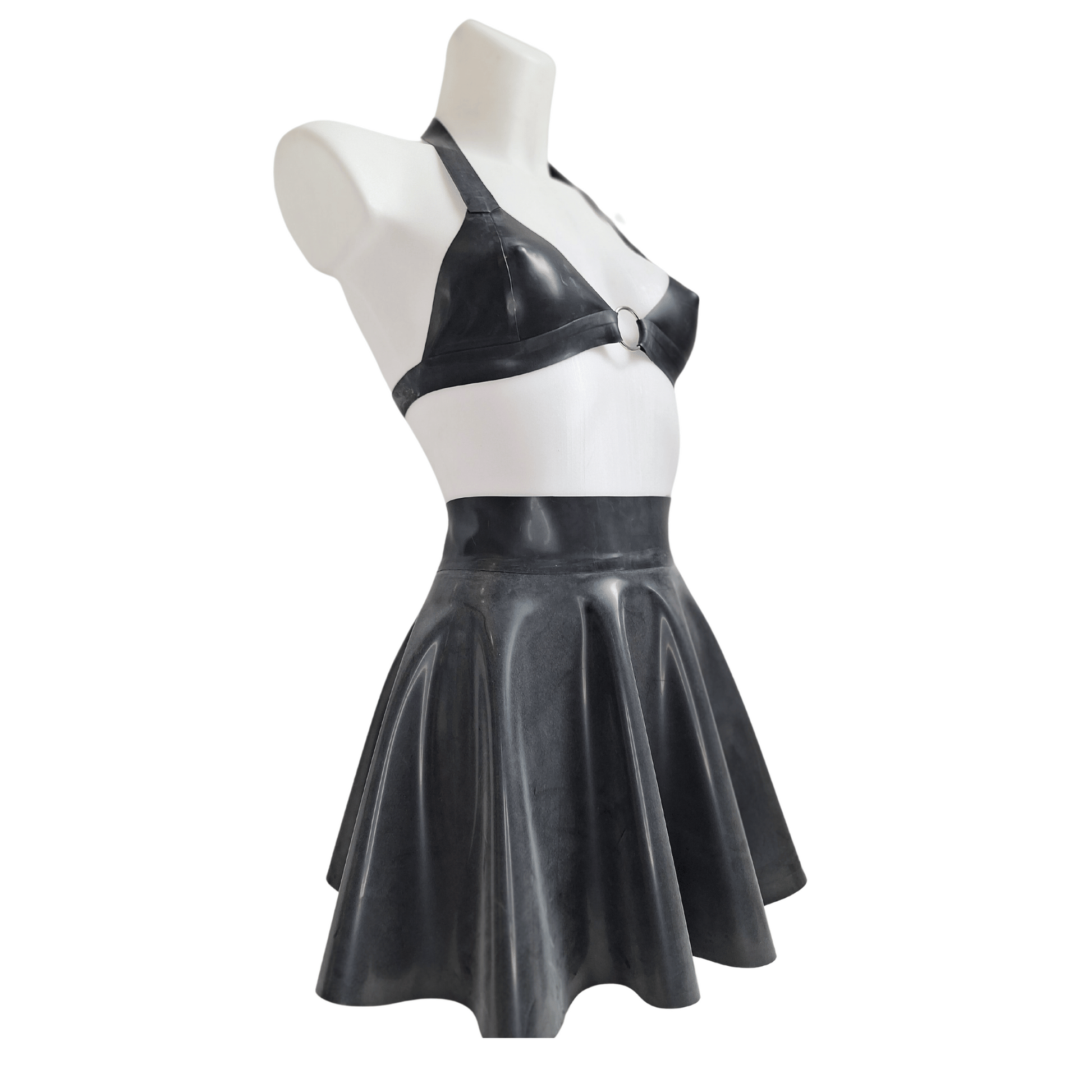 Black Latex O Ring Bra & Skater Skirt Set