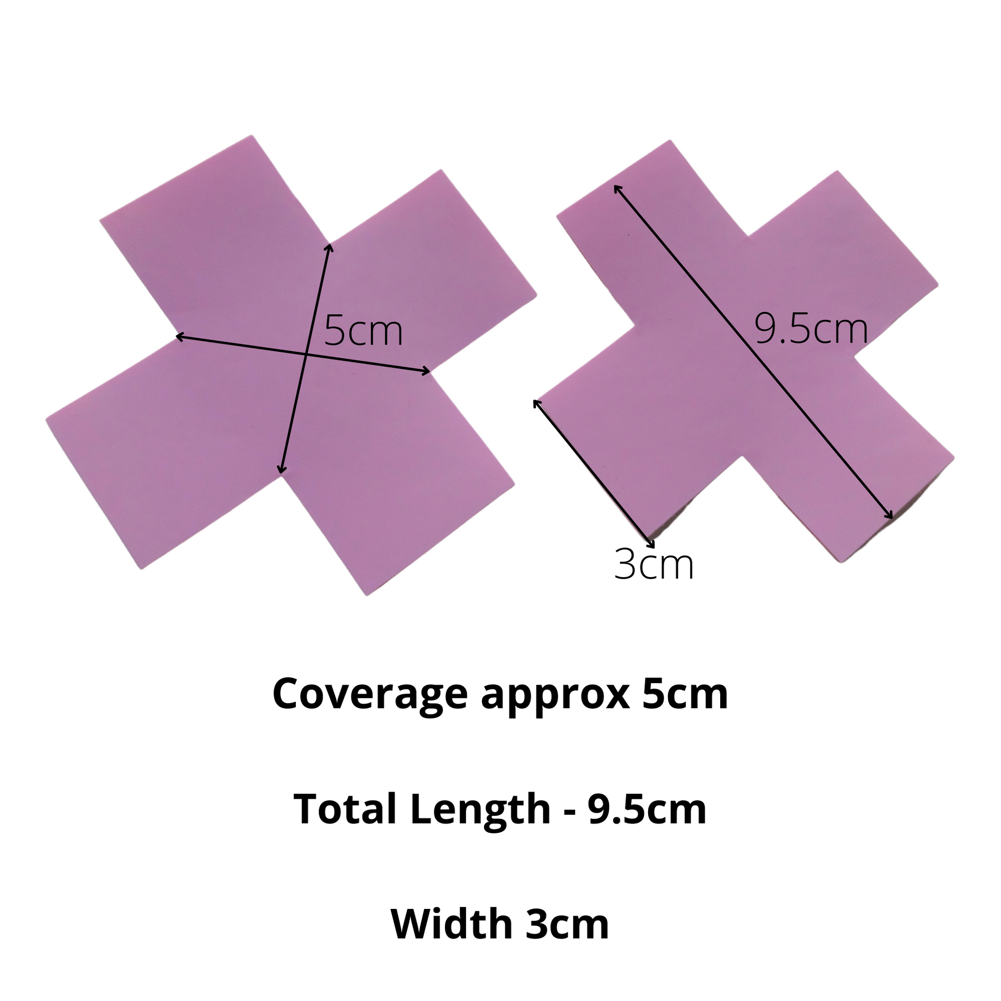 Cross X shaped nipple pasties, THE perfect way to add sparkle whilst keeping those nipples covered. They are, 10cm x 10cm with a center coverage of 5/6cm. 12 beautiful glittery & sparkly colours to choose from.