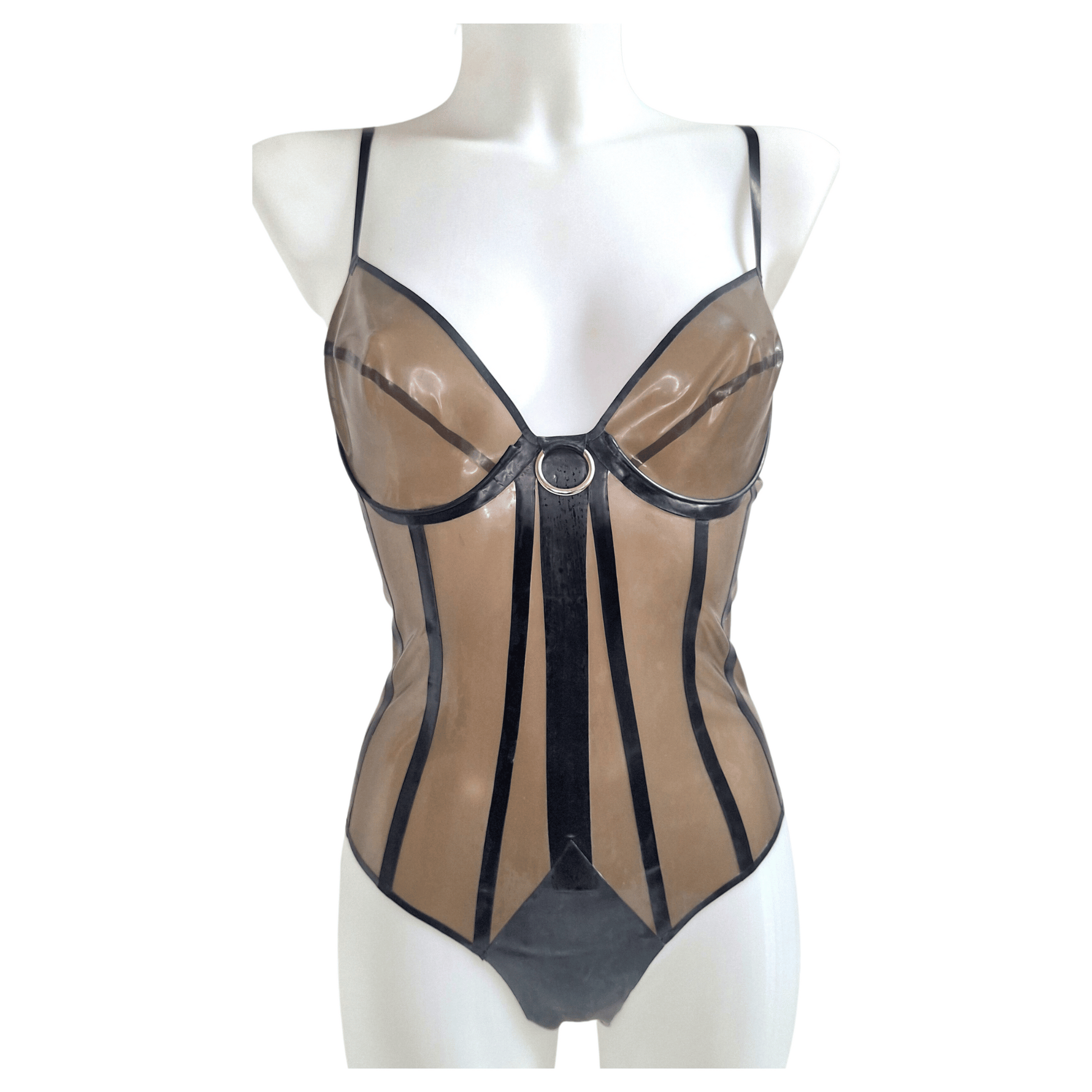 Semi Transparent Smoke Black Latex 'Seamed' Wired Bodysuit